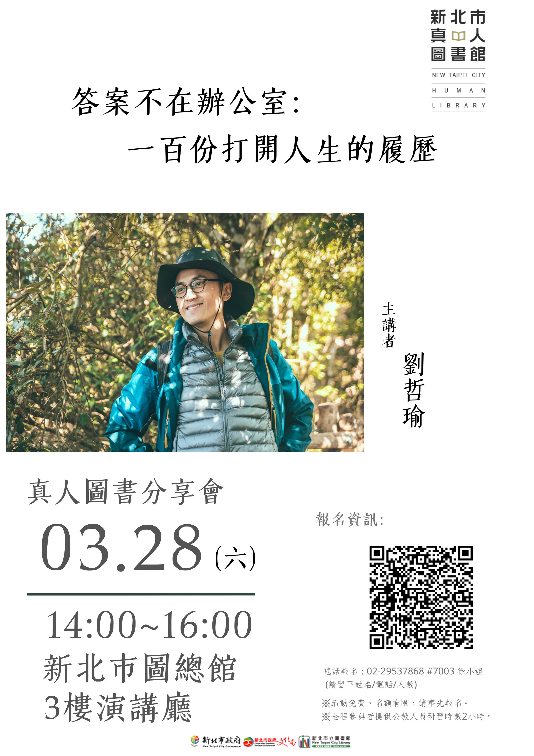 講 題:3/28(六)真人圖書分享會-「答案不在辦公室:一百份打開人生的履歷」/劉哲瑜