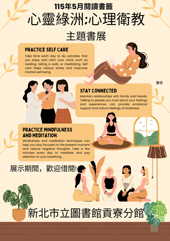 【貢寮分館】115年5月《閱讀書籤》心靈綠洲:心理衛教主題書展
