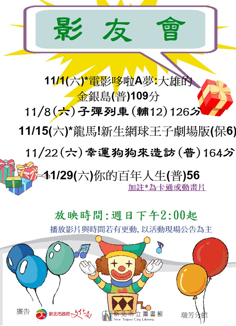 11/1 (六) *電影哆啦A夢:大雄的金銀島(普) 109分