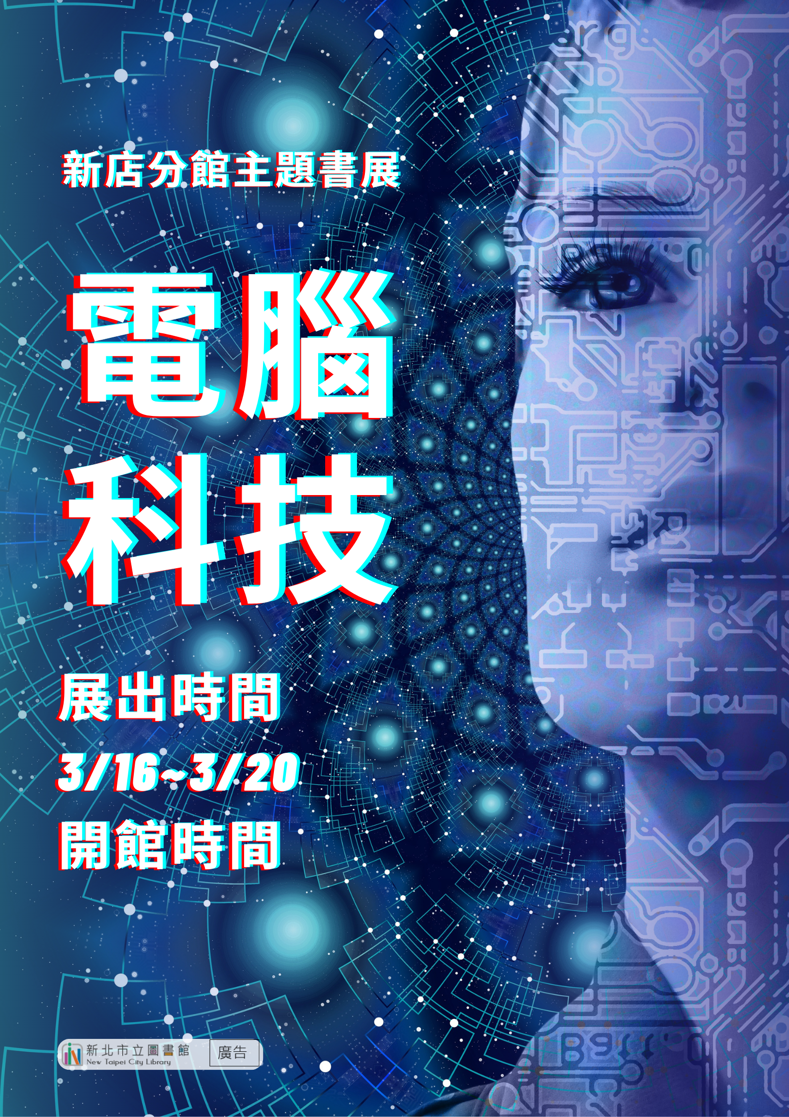【新店分館】115年3月主題書展:電腦科技 在電腦普及的時代,我們可以藉由不同的程式軟體完成許多事情 我們熟知的科技背後也可能隱藏不為人知的秘密,等著你來發現! 展出時間:3月16日至3月20日開館時間 3月26日清館日不對外開放 展出地點:新北市立圖書館新店分館主題書展區 新北市新店區北新路三段105巷2號3樓 展示期間 圖書可外借