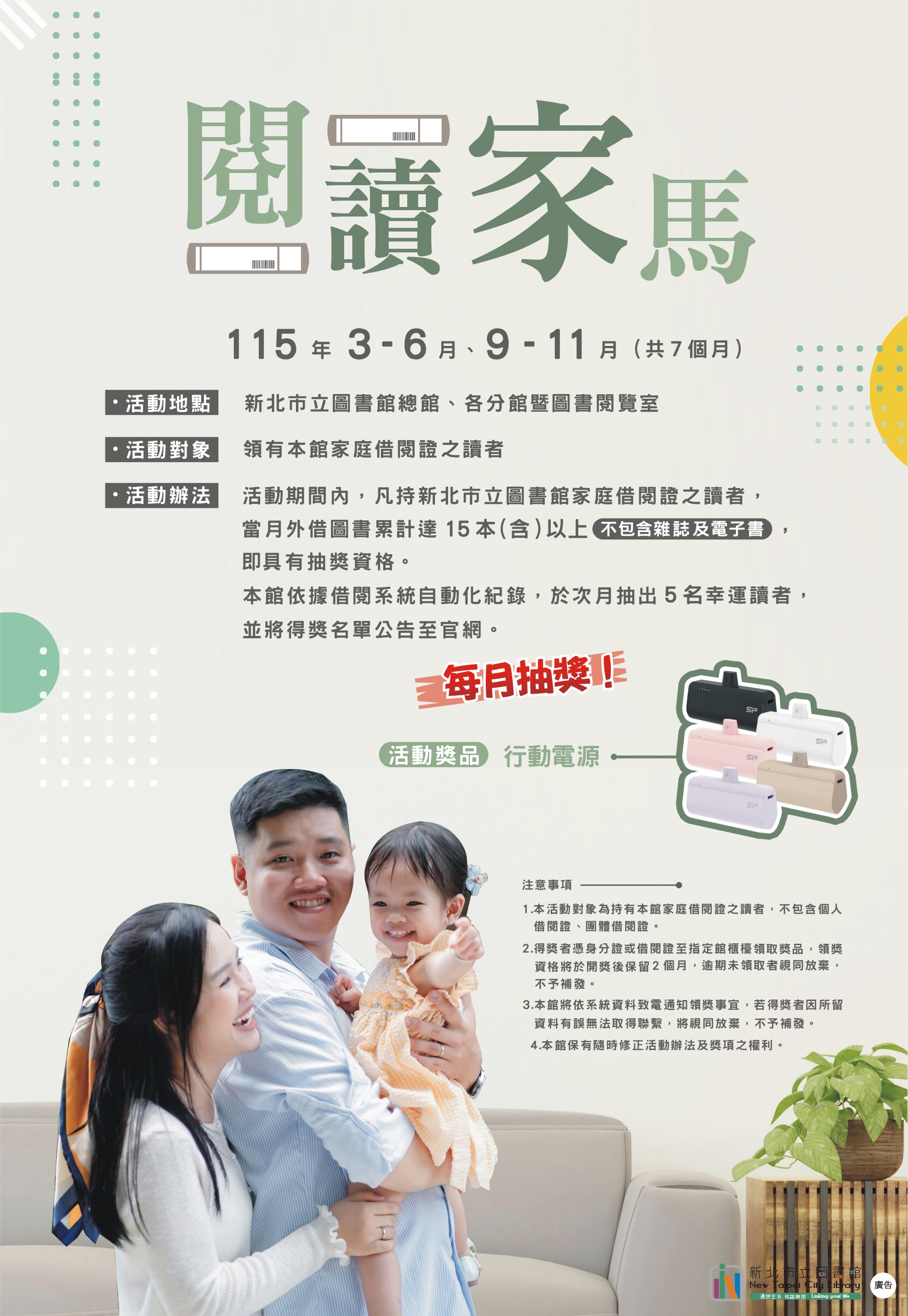 【全市】辦理「閱讀家馬」活動,歡迎踴躍參加(115年3月至6月及9月至11月)。