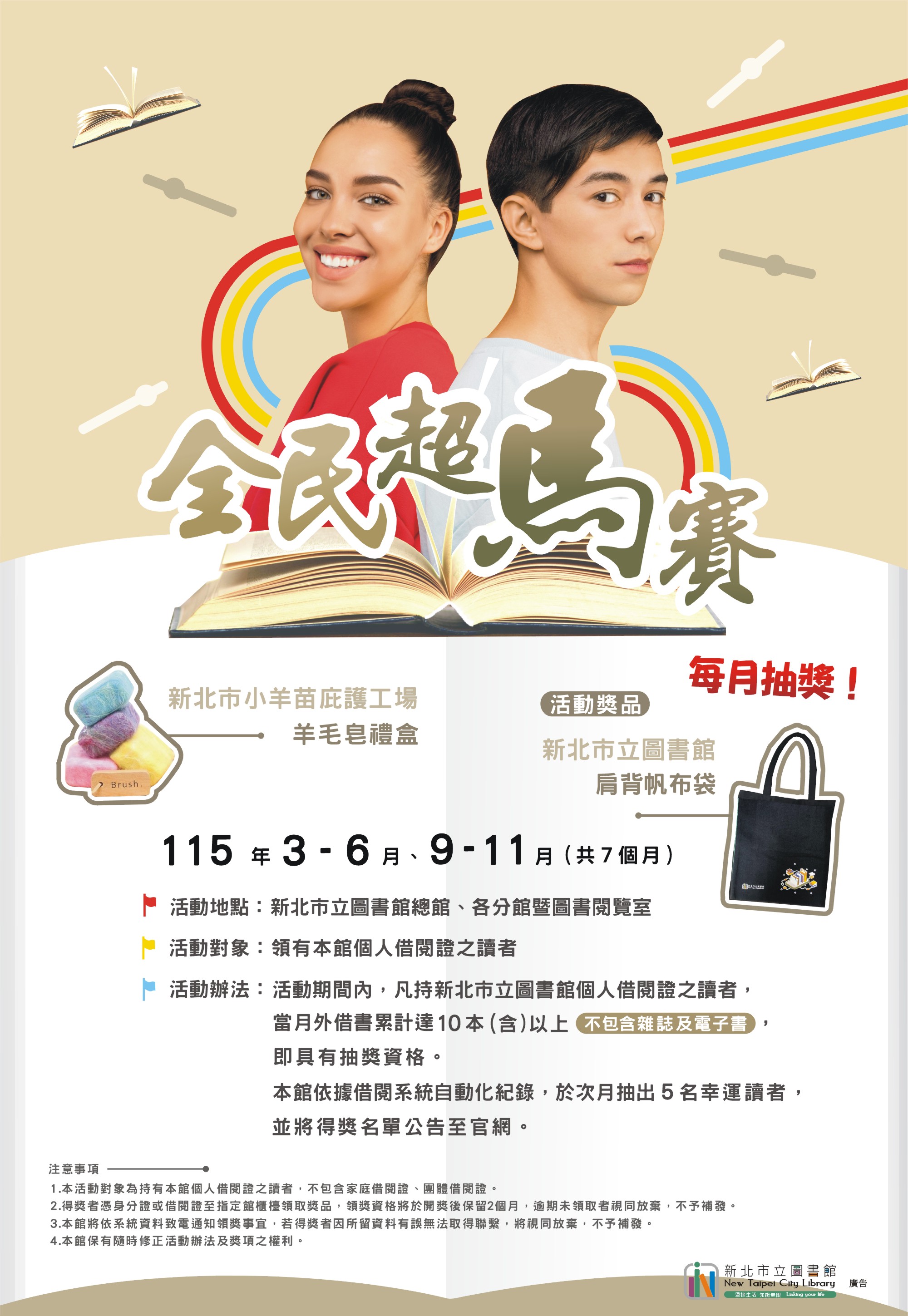 活動地點:新北市立圖書館總館、各分館暨圖書閱覽室。