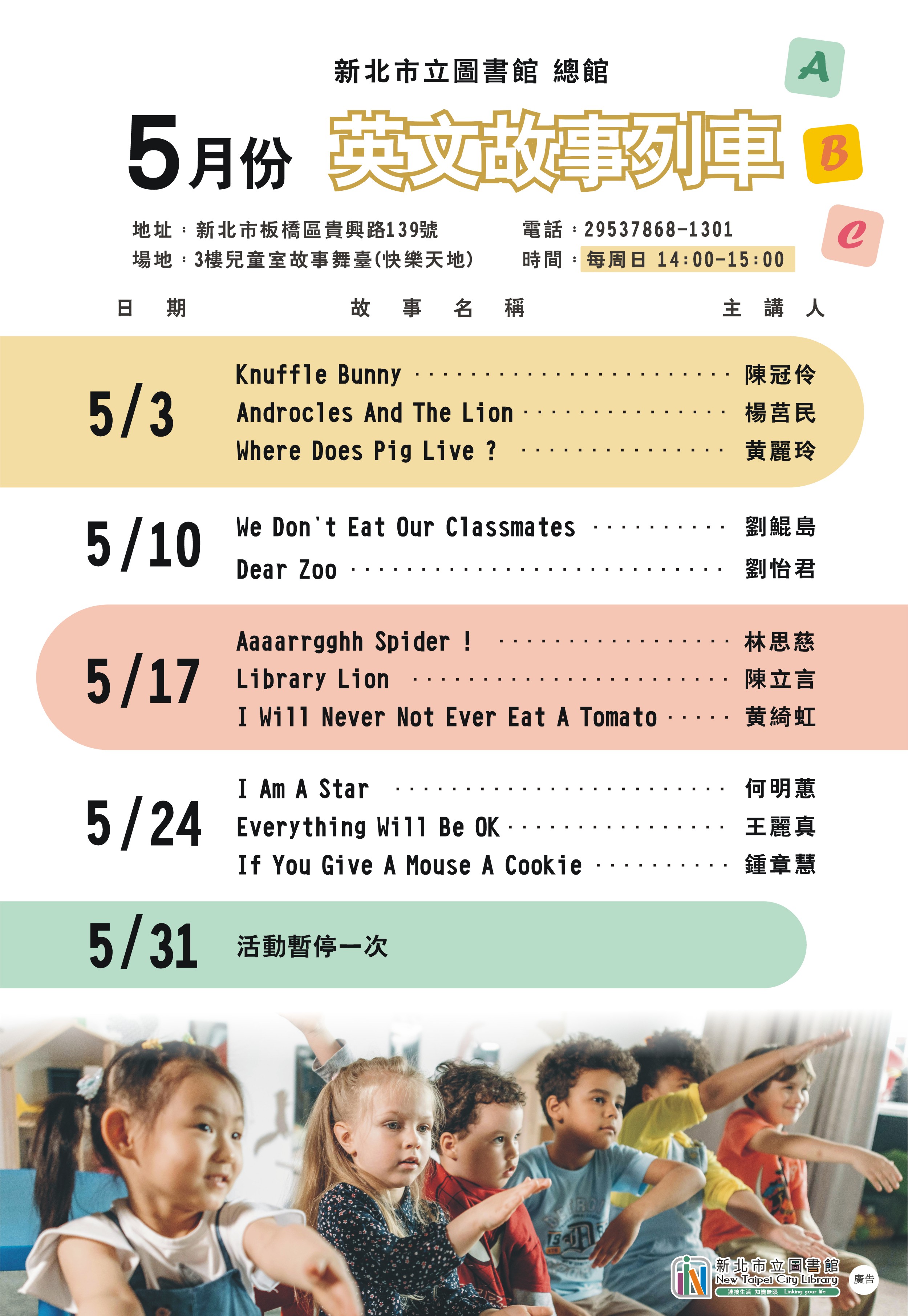 地點: 3樓兒童室故事舞臺(快樂天地)