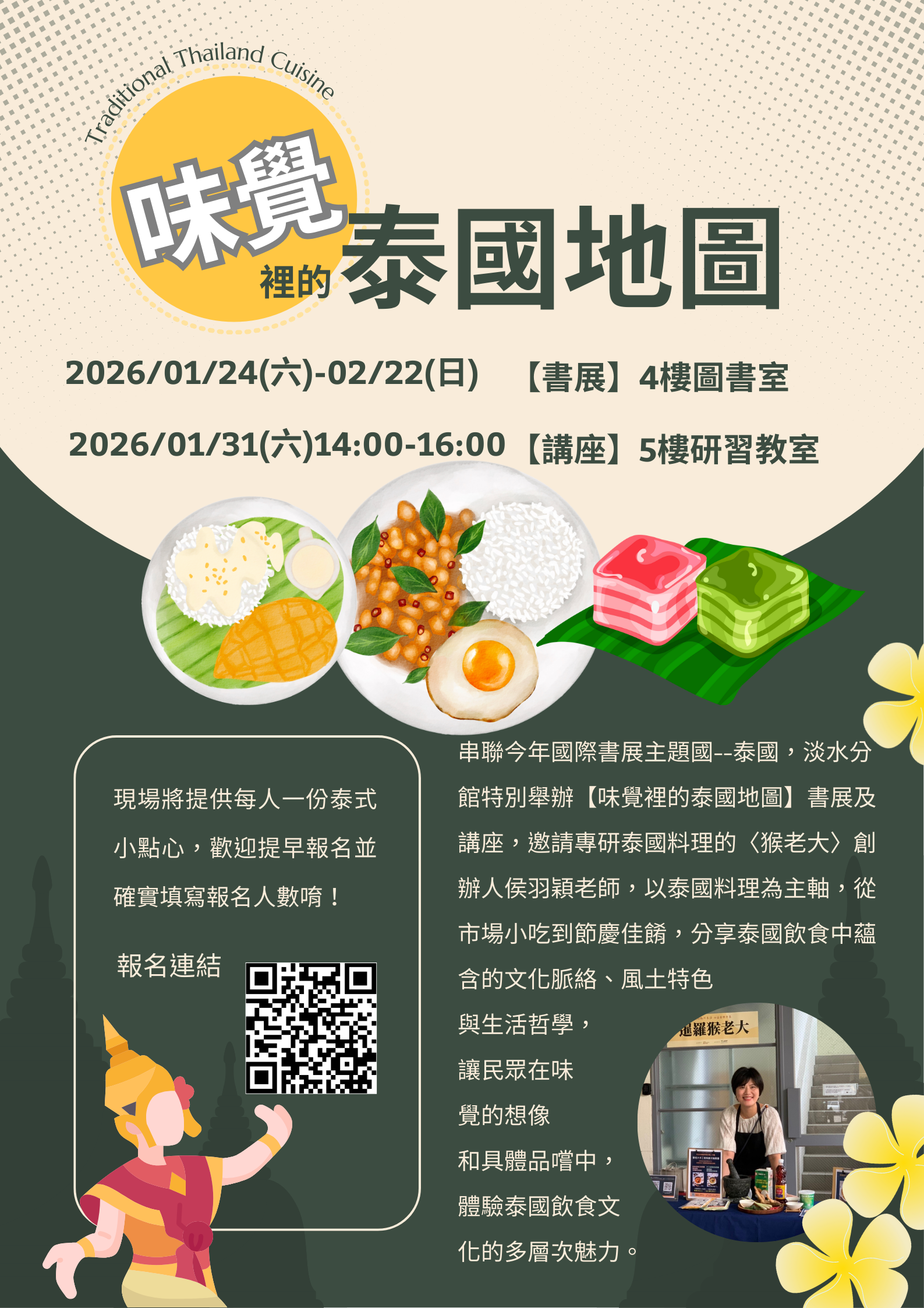 配合台北國際書展「泰國」主題,新北市立圖書館規劃一系列相關活動,淡水分館也舉辦《味覺裡的泰國地圖》邀請您來品嘗泰國的酸甜辛辣。