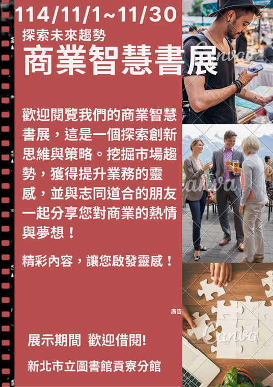 展示期間:11月1日~11月30日開館時間 展示地點:新北市貢寮區仁愛路79號/3樓書展區 洽詢電話:02-24903203轉9 ▲活動單位保有取消、變更之權利,詳情請依現場為主。 ~展示期間歡迎借閱~