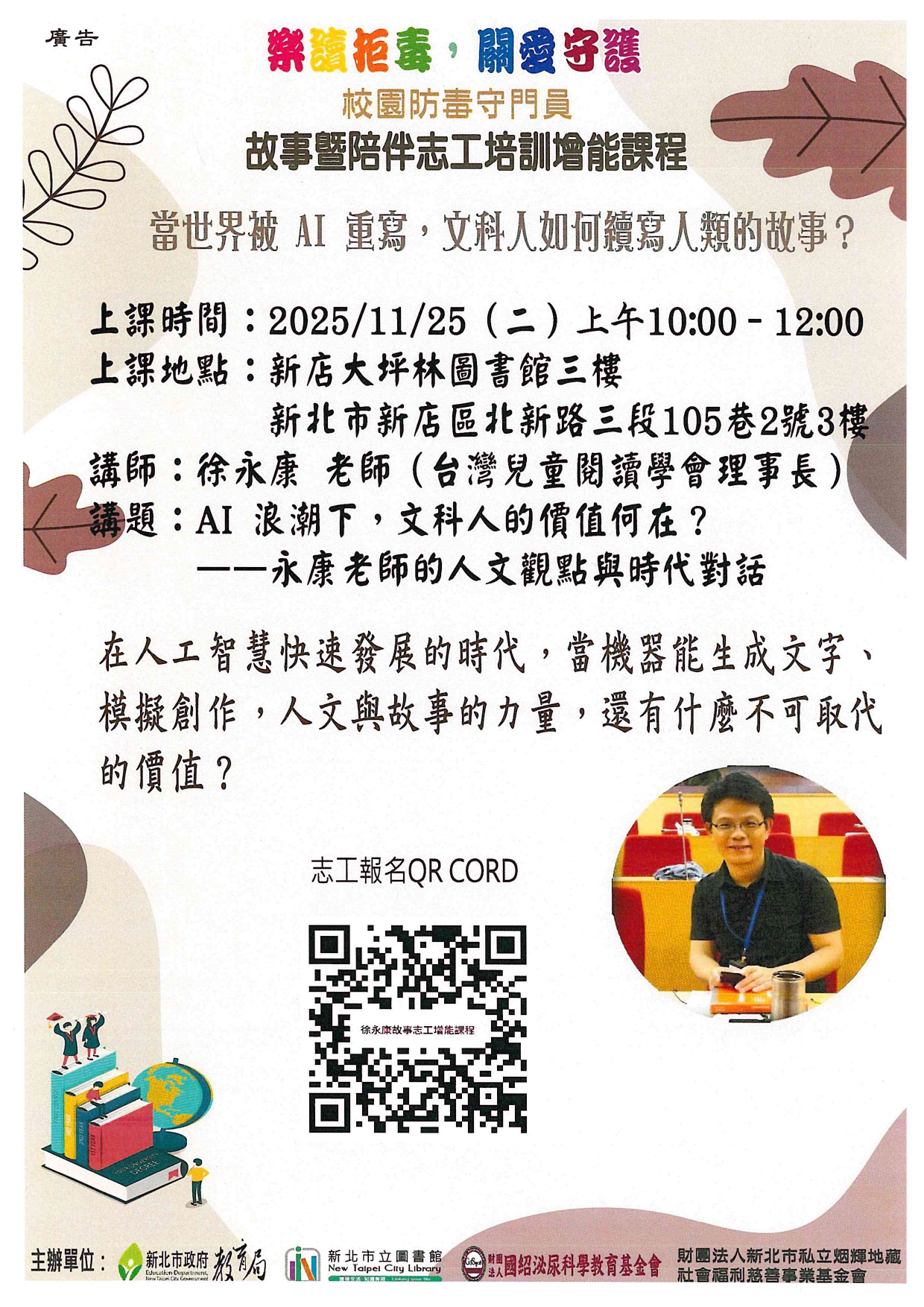 【新店分館】樂讀拒毒 關愛守護 故事志工增能課程