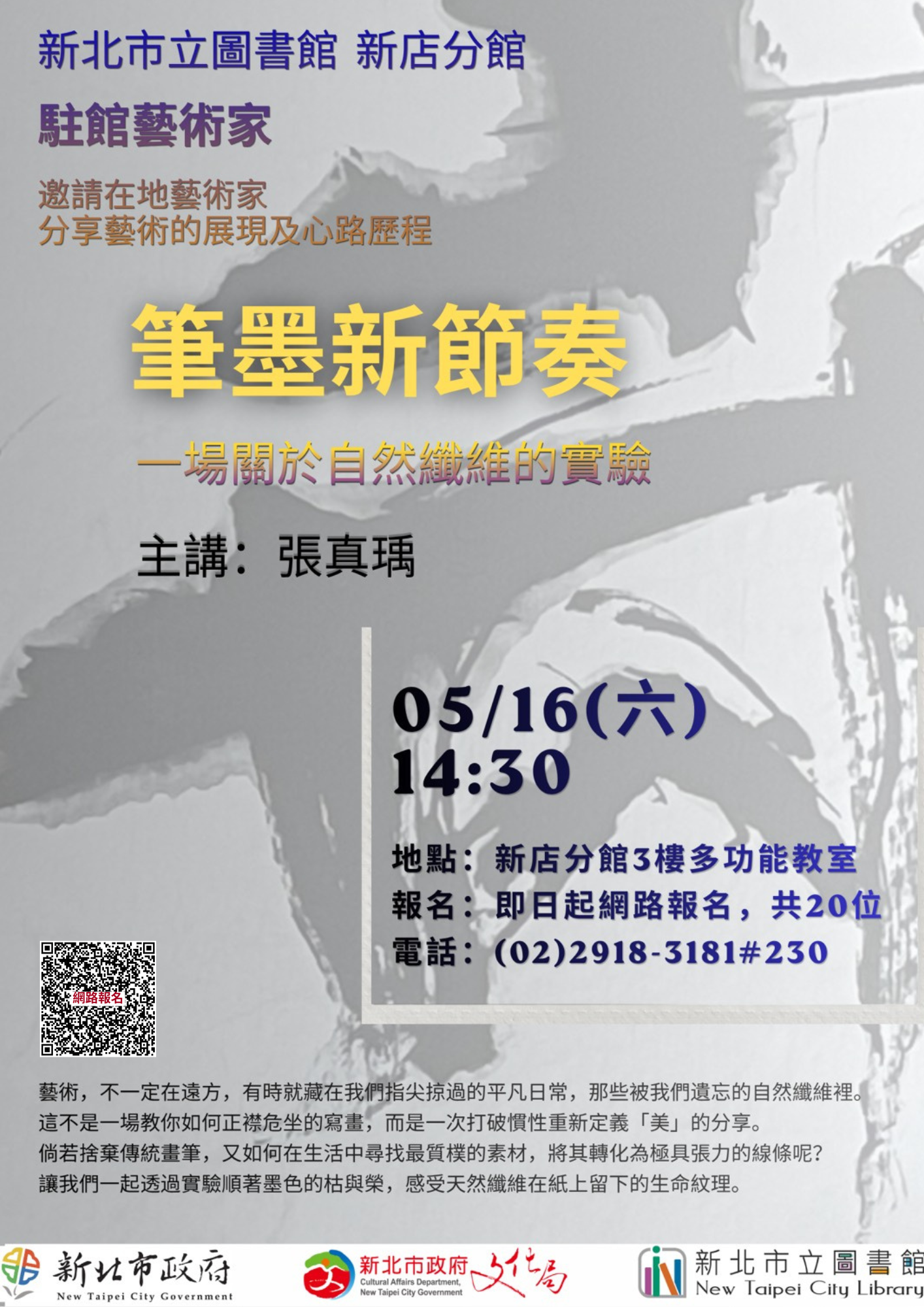 【新店分館】115年5月駐館藝術家 - 5/16(六) 14:00 筆墨新節奏-一場關於自然纖維的實驗/藝術家:張真瑀
