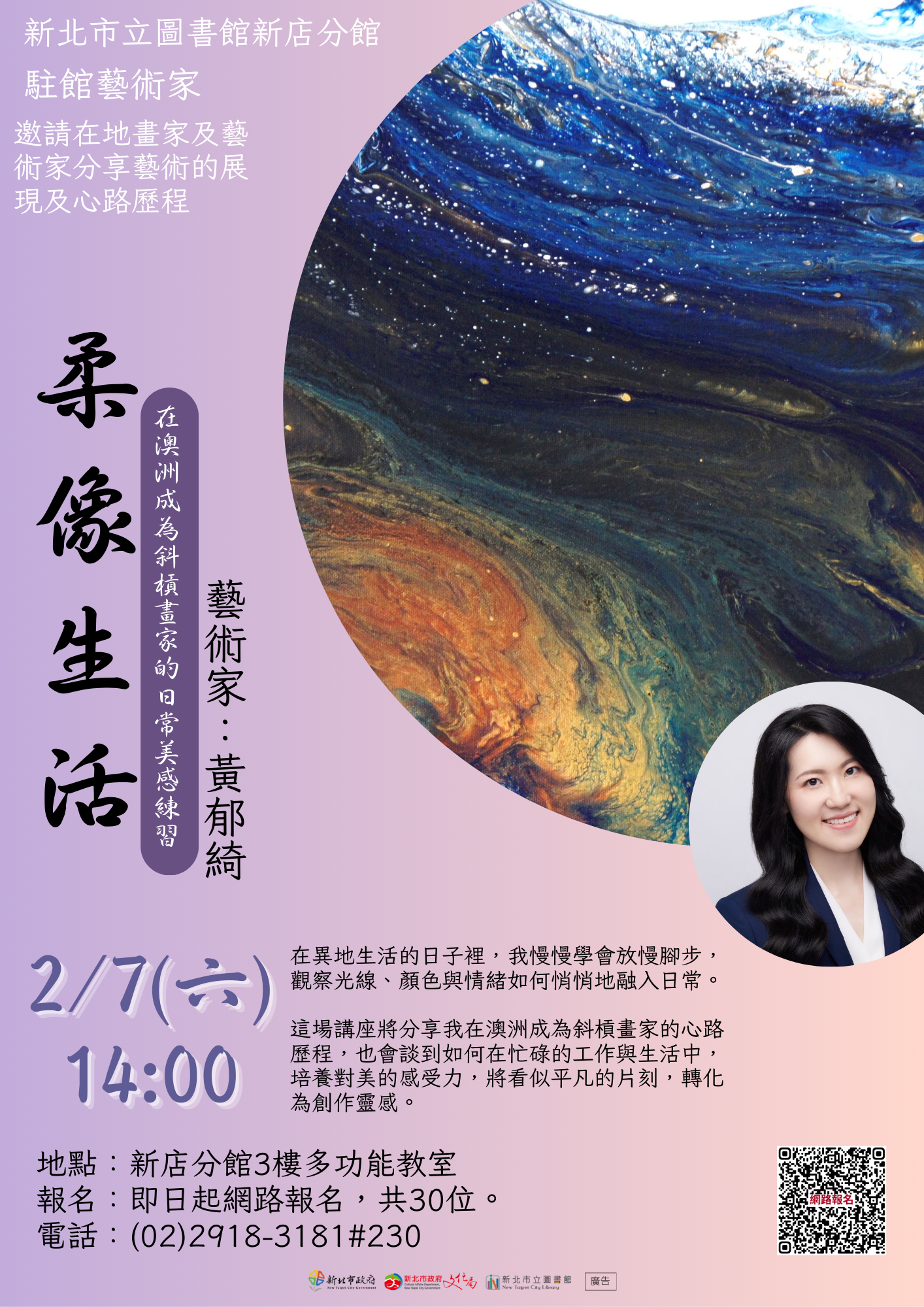【新店分館】115年駐館藝術家-2/7(六) 14:00 柔像生活:在澳洲成為斜槓畫家的日常美感練習
