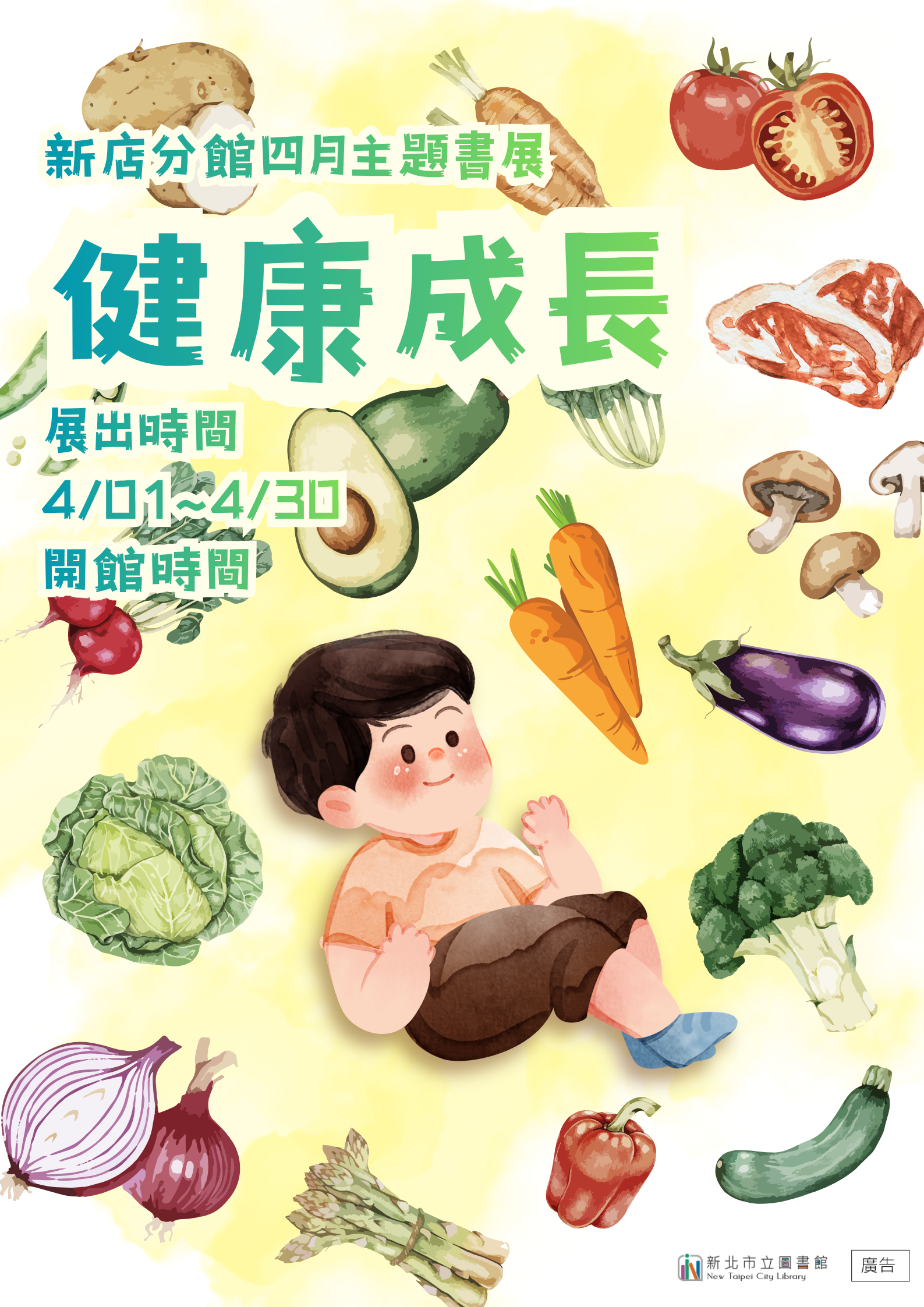【新店分館】115年4月主題書展:健康成長 一本書教會孩童均衡飲食、勤奮洗手、享受運動,讓孩子在愛上閱讀的同時,也能養成良好規律的健康習慣。 展出時間:4月1日至4月29日開館時間 4月30日清館日不對外開放 展出地點:新北市立圖書館新店分館青少年書區 新北市新店區北新路三段105巷2號3樓 展示期間 圖書可外借