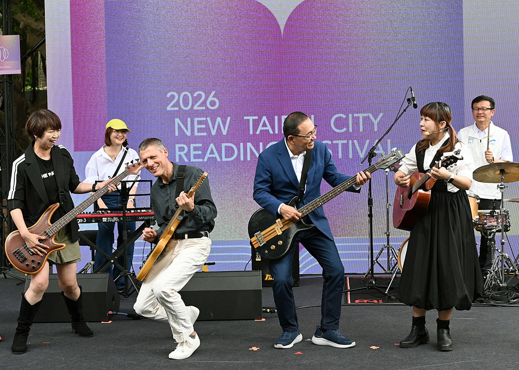 新北市長侯友宜化身電吉他手,為2026新北閱讀節揭開序幕。二位閱讀大使,從小在圖書館長大的街頭藝人黃意涵,特別帶來量身打造的《新北閱讀節情歌》;曾獲馬賽國際輕歌劇比賽首獎的法國男高音Nicolas Drouet則帶來自己最喜歡的一本書《擁有搖擺樂風的畫家:桑貝》送給市長,希望透過無國界的音樂魅力,讓大家可以對法國文化有更深一層的認識。