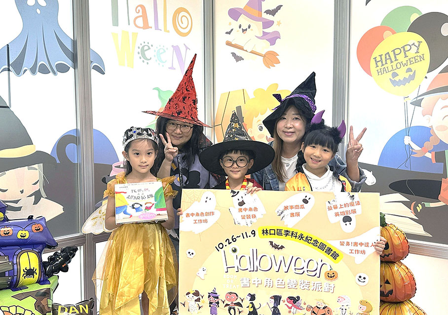 迎接萬聖節,新北市林口李科永紀念圖書館特別推出「書中人物變裝趴」,邀請社區親子10月31日(五)晚上裝扮成最喜歡的書中角色,到圖書館感受充滿書香氣息的萬聖節。